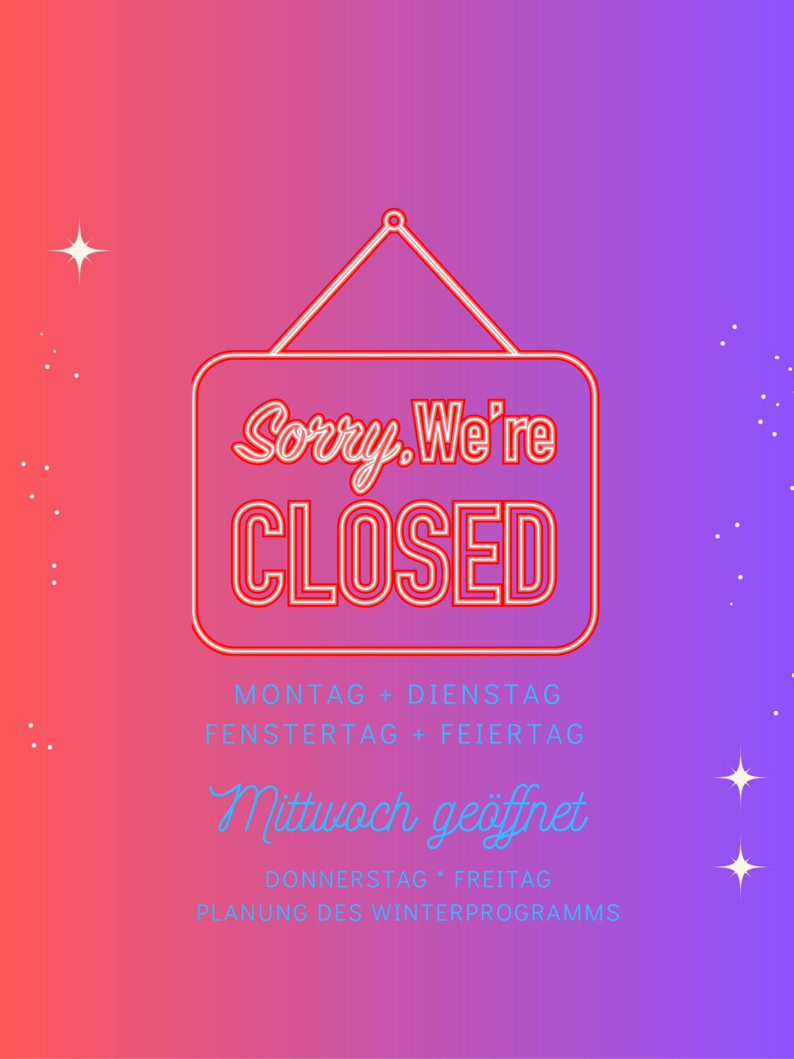 Wir sind diese Woche am Mittwoch für euch da. Donnertag und Freitag planen wir das Programm für den Winter :)