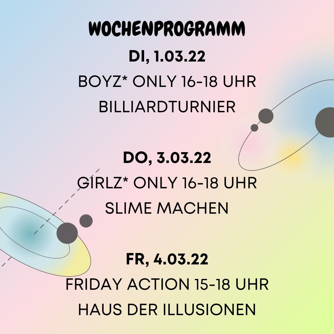 Unser Wochenprogramm von 07.03-11.03.22