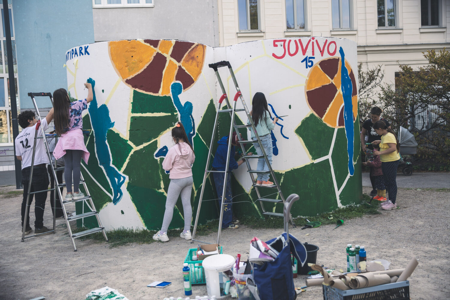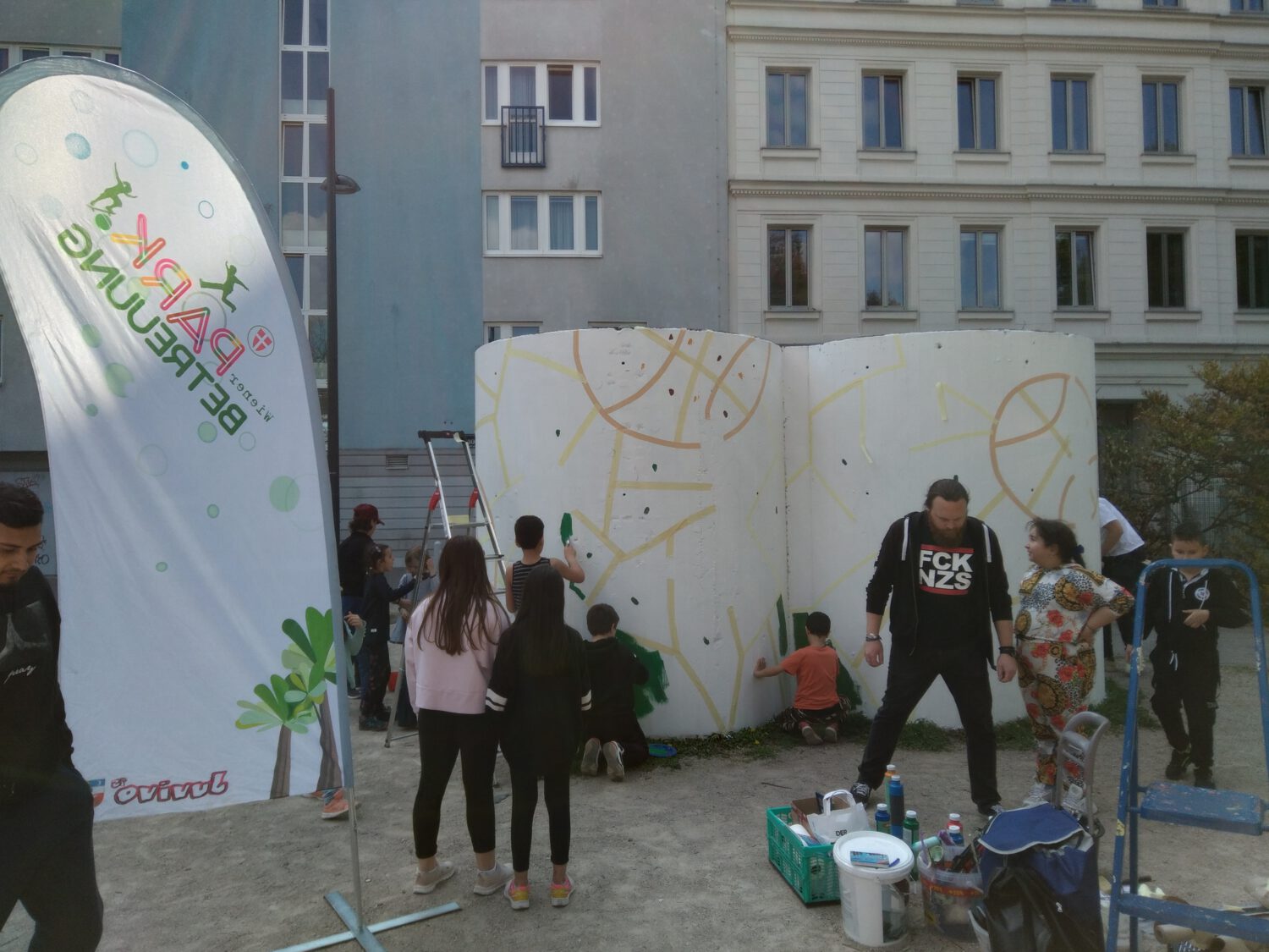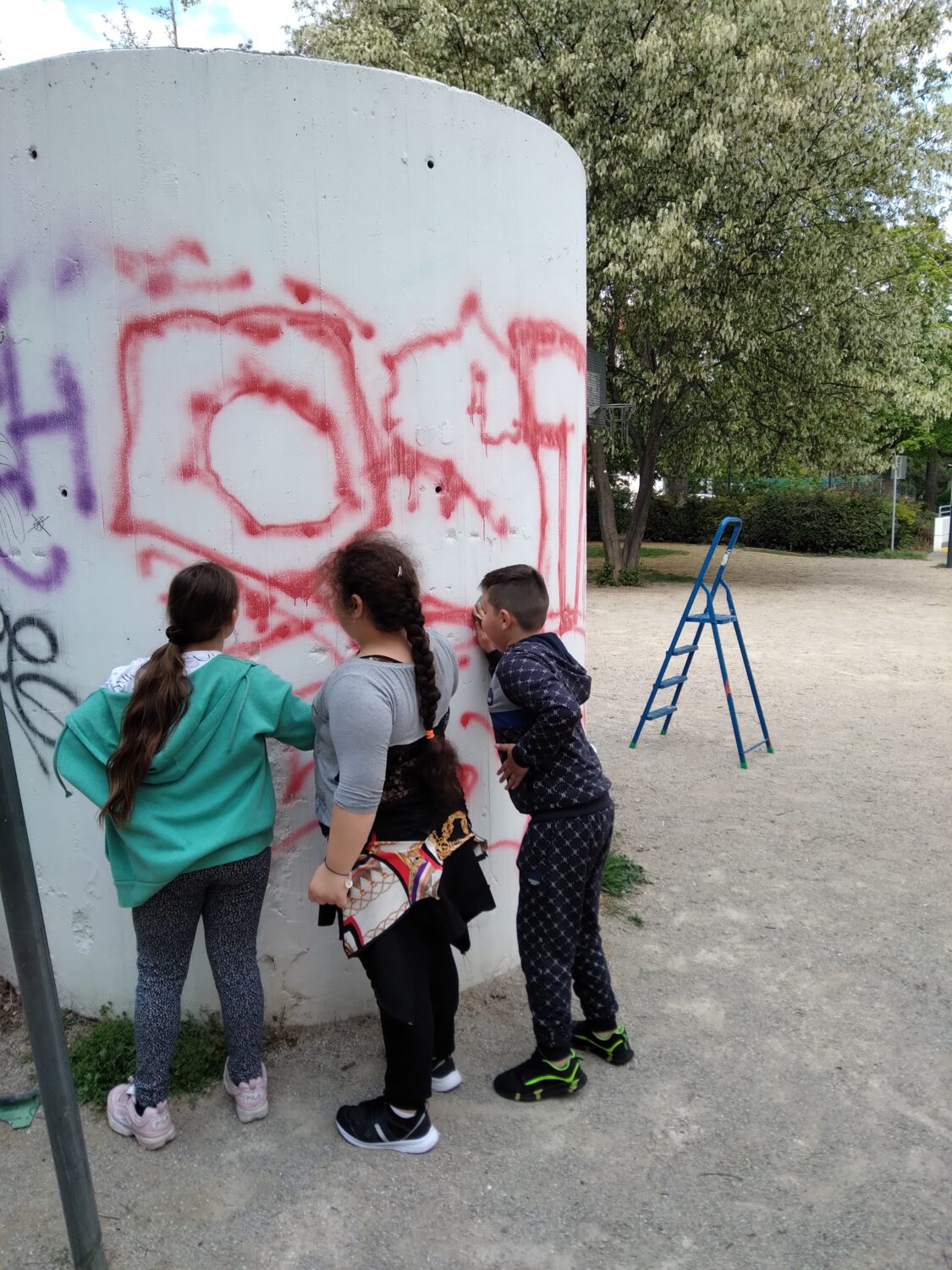 Am Freitag, den 29. April 2022 war es soweit – nach getaner Vorarbeit bemalten und gestalteten wir gemeinsam mit den aufgeregten Kids die Lüftungsschächte im Reithofferpark. Gut ausgerüstet mit vielen Farben ging es auch mit Spaß und Freude gleich ans Werk!