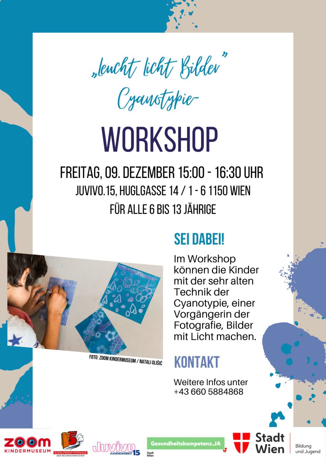 In Kooperation mit ZOOM Mobil konnten am Freitag, den 09. Dezember 2022 unsere jüngeren Besucher*innen bei einem Kreativworkshop in unserer Einrichtung teilnehmen. Mit der sehr alten Technik der Cyanotypie, einer Vorgängerin der Fotografie, gestalteten die Kinder ihre eigenen Bilder mit Licht. Dabei entstanden spannende Kunstwerke in den schönsten [...]